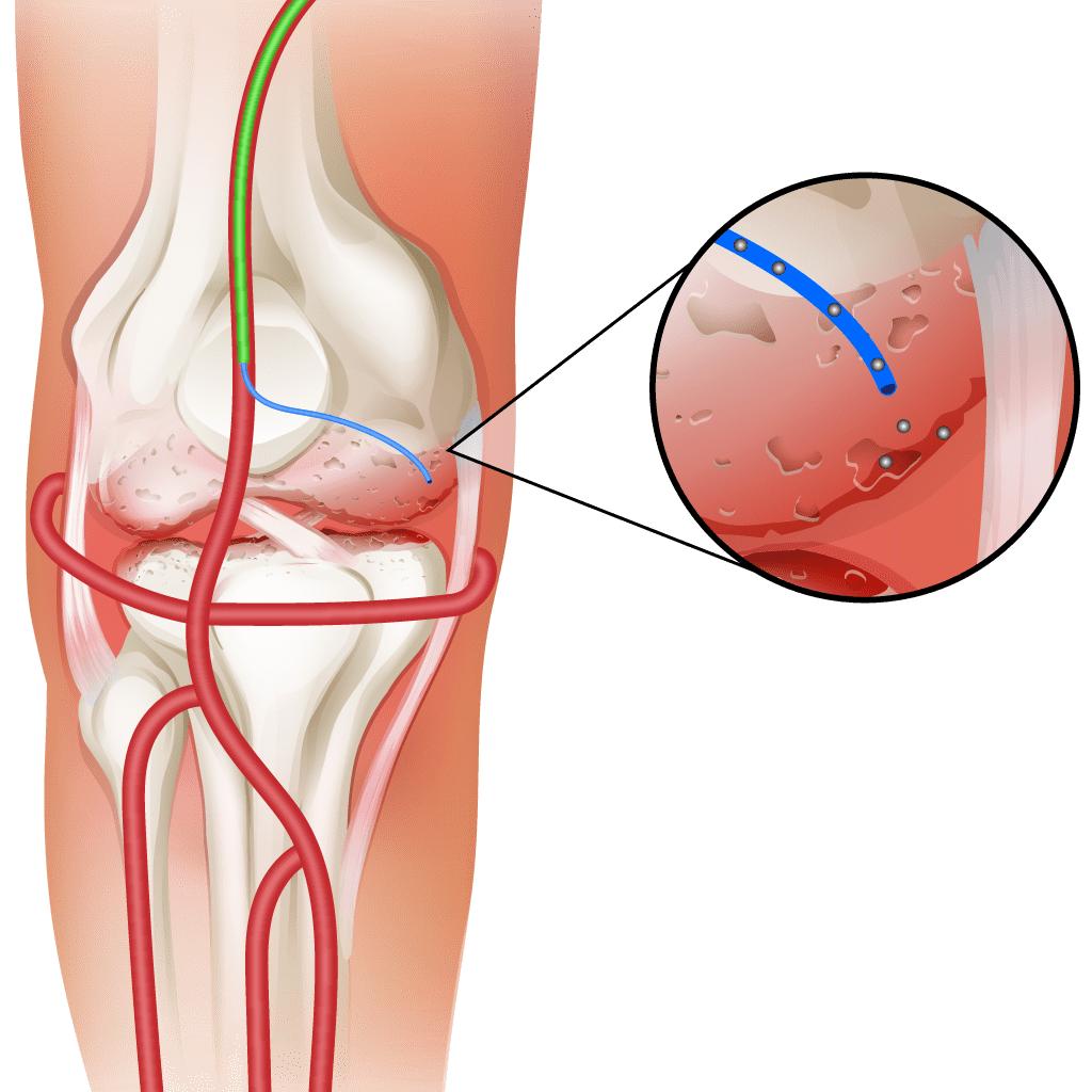 Genicular artery embolization (GAE) is a minimally invasive outpatient procedure to treat chronic knee pain from osteoarthritis (OA). It plays an important role in knee osteoarthritis care, reducing the need for pain medications and extending the time until surgery is required.